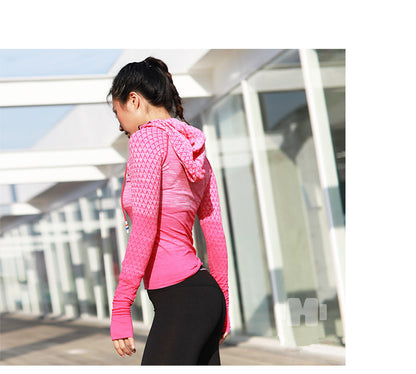 Front Zipper hooded Yoga Shirts Long Sleeve Yoga Top Sportswear Quick Dry Tracksuit Running Jacket