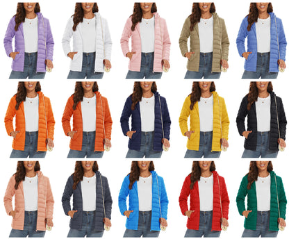 Full Zip Up Hooded Puffer Women's Winter Quilted Warm Down Coats Casual Windbreaker Padded Outwear Outdoor Jacket