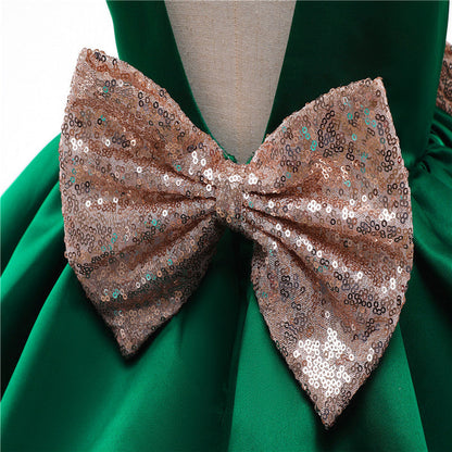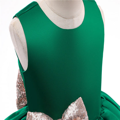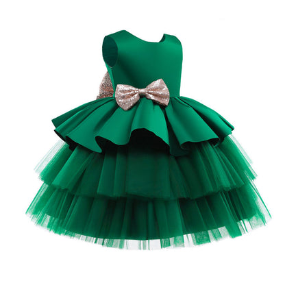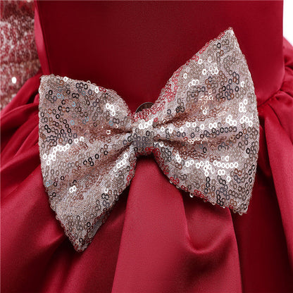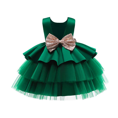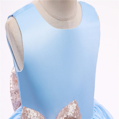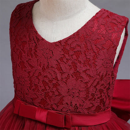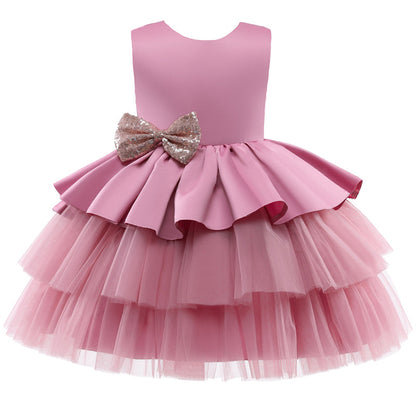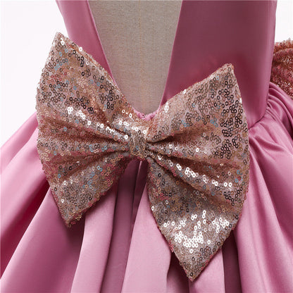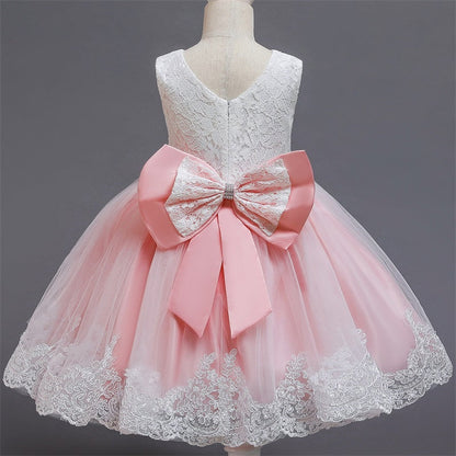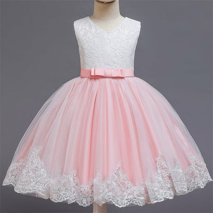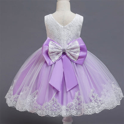 Girls Kids Summer Sleeveless Wedding Sequin Bow Children Lace Smash Tutu Princess Dress