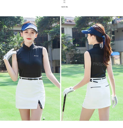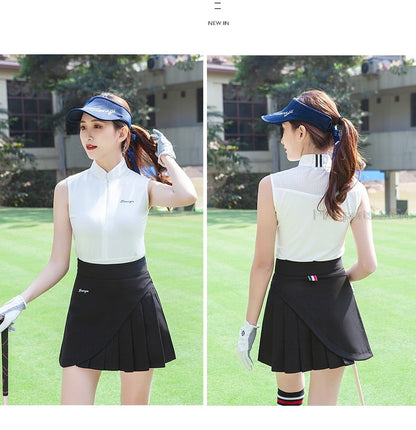 Golf Clothes Ladies Skirt Set Women Sleeveless Slim Top Shirts Pleated Skirts Tennis Badminton Dry Fit Skirt