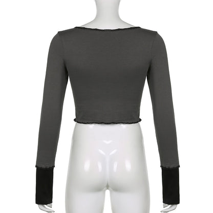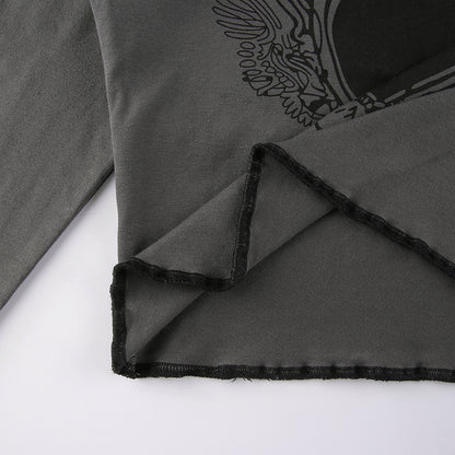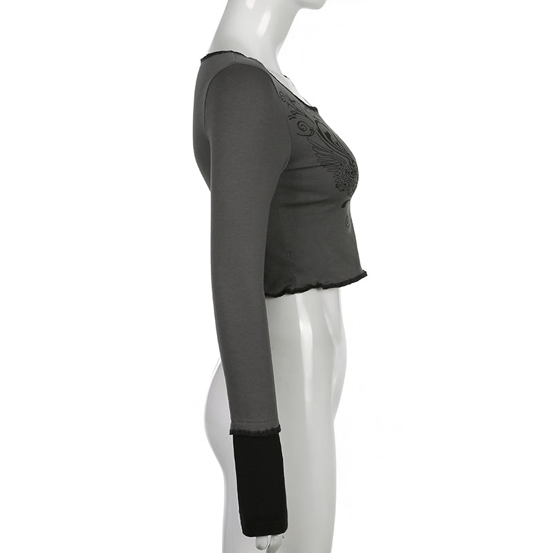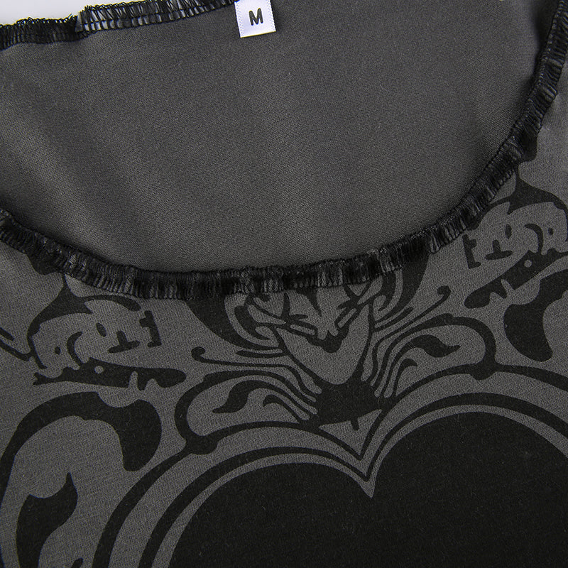 Grunge Retro Fashion Heart Printed Autumn T-shirts for Women Crop Top Dark Academia Gothic Clothes Aesthetic T shirt