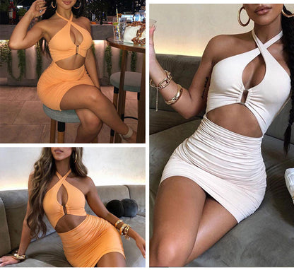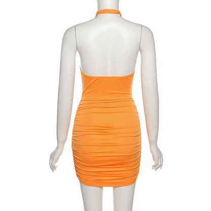 Halter Ruched Bodycon Dress Cut Out Backless Sexy Summer Mini Party Night Club Dress