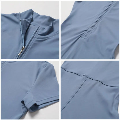 Yoga Jumpsuit Women Zipper Short Sleeve one piece Gym suit Fitness Set Workout Romper Elastic Sportswear