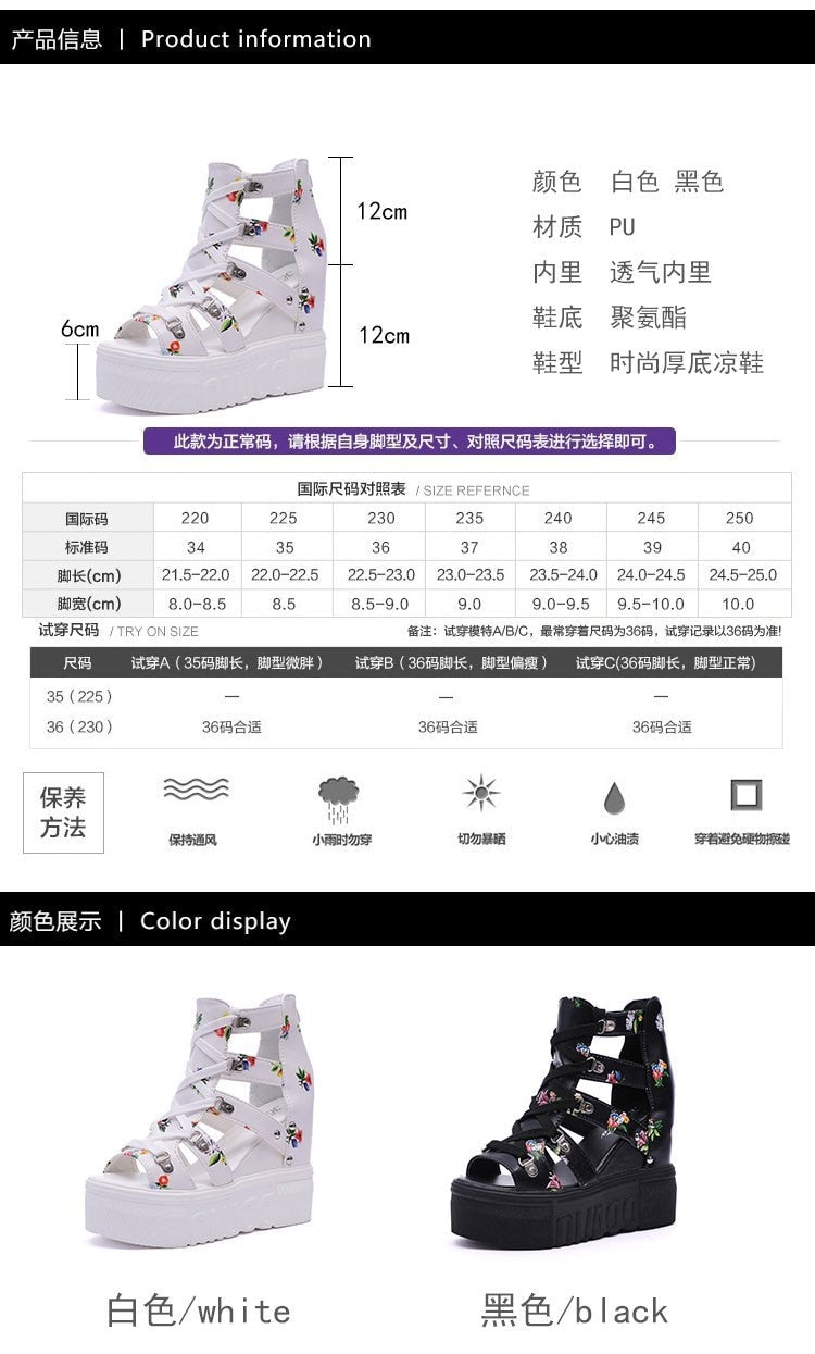 High-heeled Sandals Women's Summer Thick-bottomed Wedge Hollow Fish Mouth Roman Style Gladiator Casual Zipper Platform Shoe