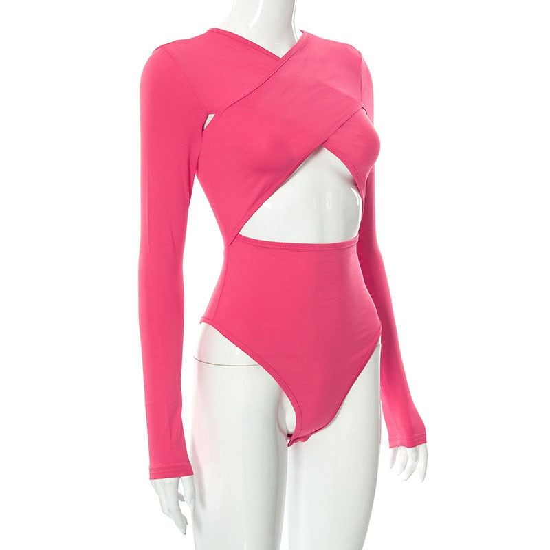 Pay in 4 instalments with AfterPay, Buy Now Pay LaterHollow Out Body Tops Solid Casual Slim Long Sleeve Bodysuit Autumn Bodycon Bodysuit
