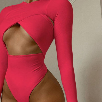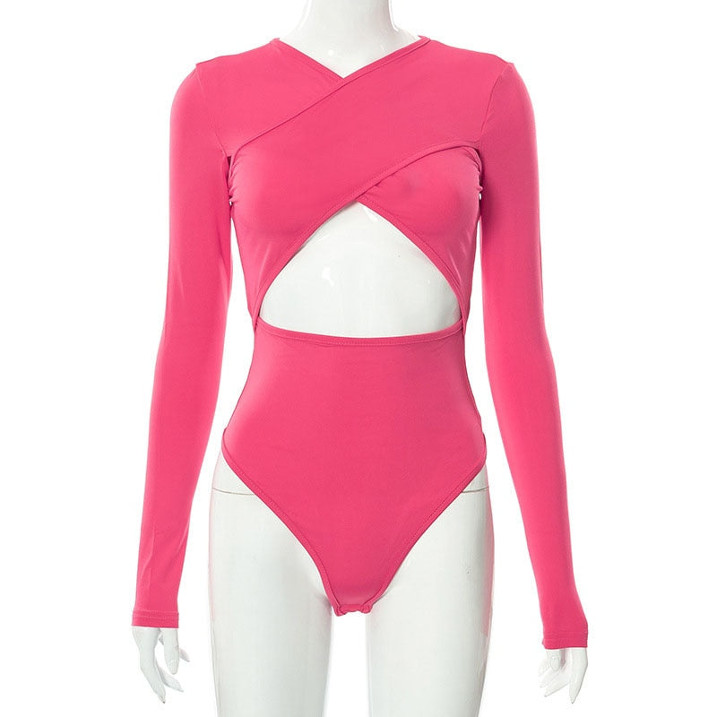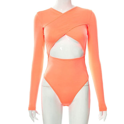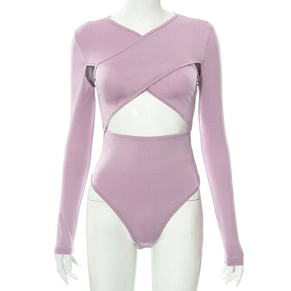 Hollow Out Body Tops Solid Casual Slim Long Sleeve Bodysuit Autumn Bodycon Bodysuit