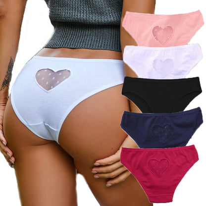 Hollow Out Heart Panties Low-Waist Underpants Comfortable Cotton Mix Briefs Underwear Lingerie