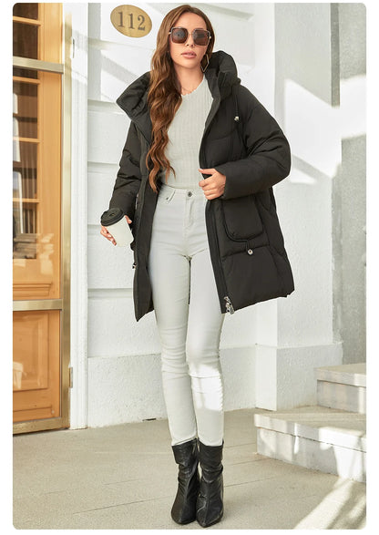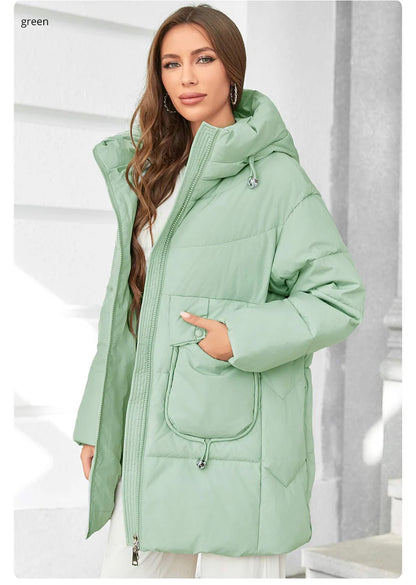 Hooded Parkas Women's Plus Size Casual Hooded Pocket Women Down Jacket Coat Outwear