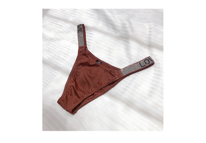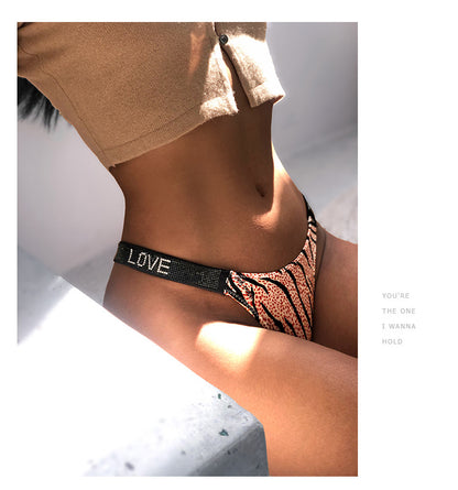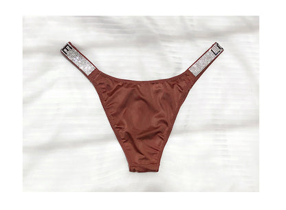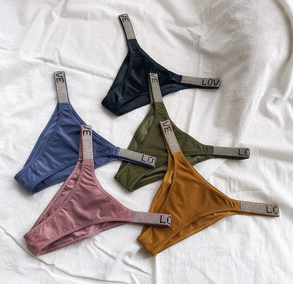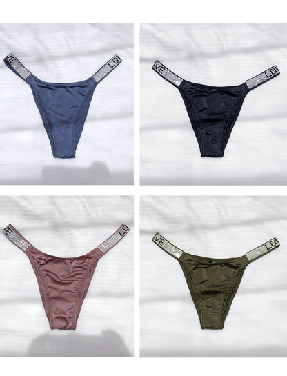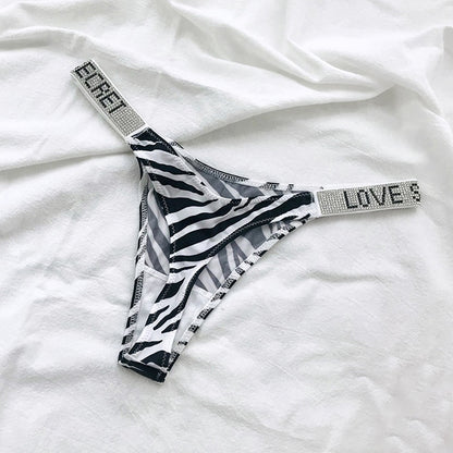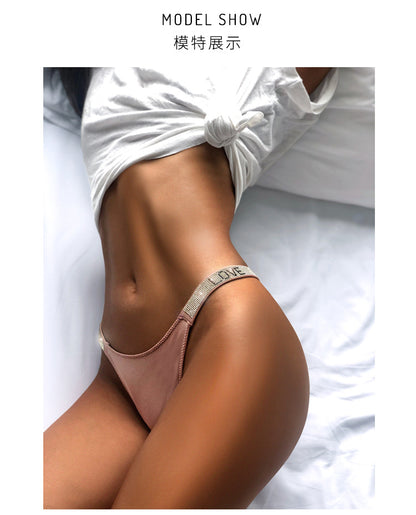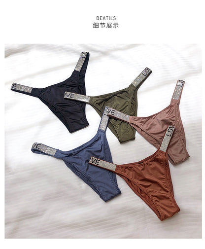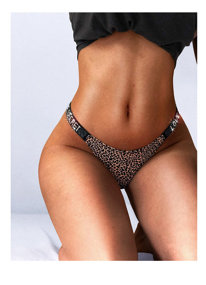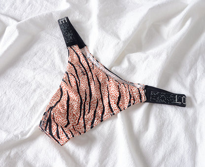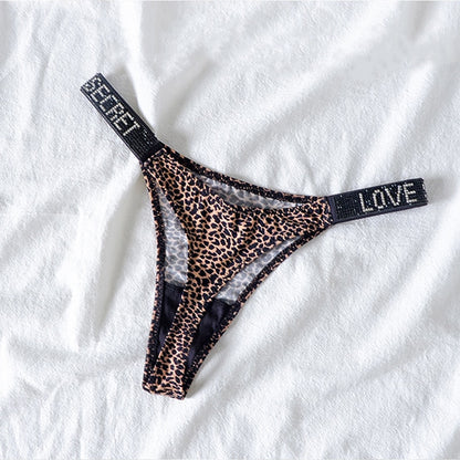 Ice Silk Seamless Panties G String Sexy Rhinestone Leopard Underwear Low Waist Fitness Lingerie T Thongs
