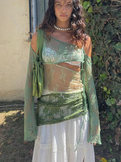 Jacquard Transparent Backless Mini Dress Women's Clothes Elegant Summer Long Sleeve Cut Out Dress