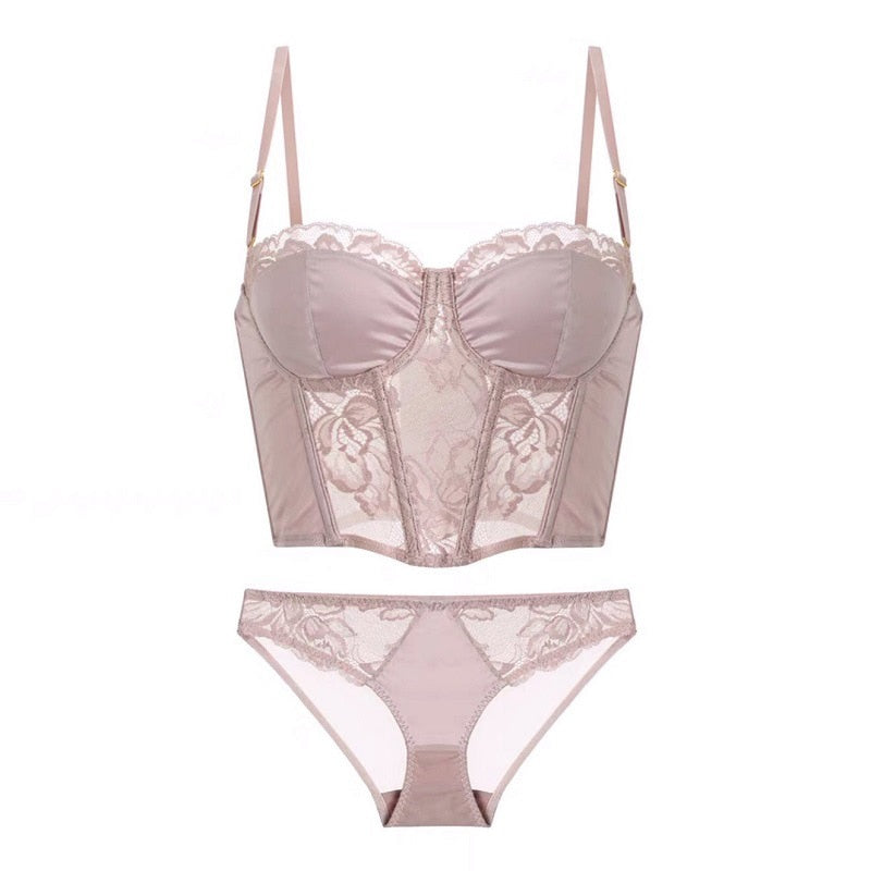 Lace Embroidery Bra Set Lingerie Steel Rubber Bone Push Up Bras French Brassiere Top and Panty Set Underwear