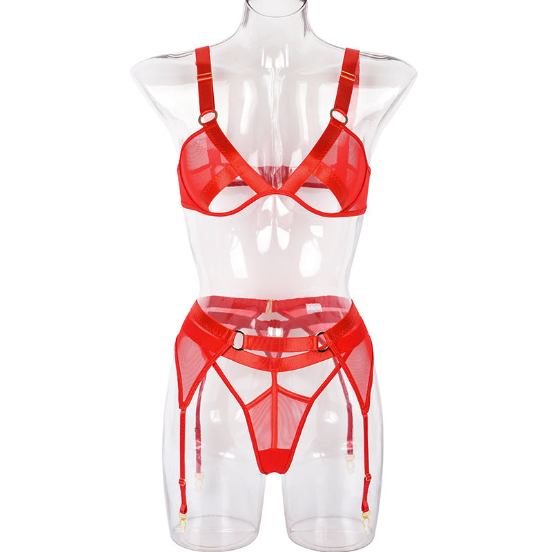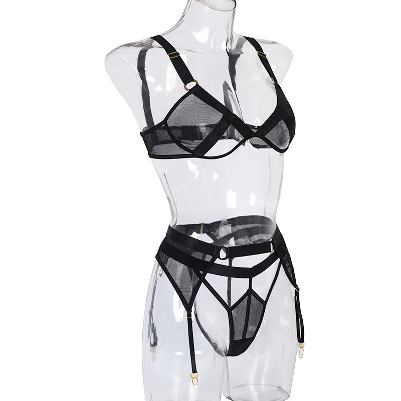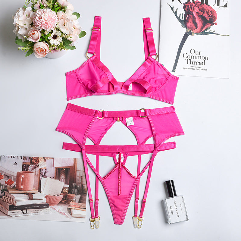 Pay in 4 instalments with AfterPay, Buy Now Pay LaterLace Hollow Out 3 Piece Set Wireless Underwear Sensual Lingerie Set