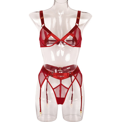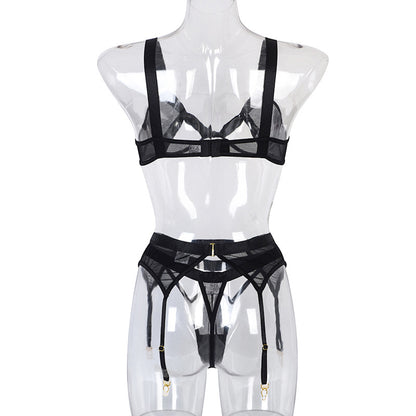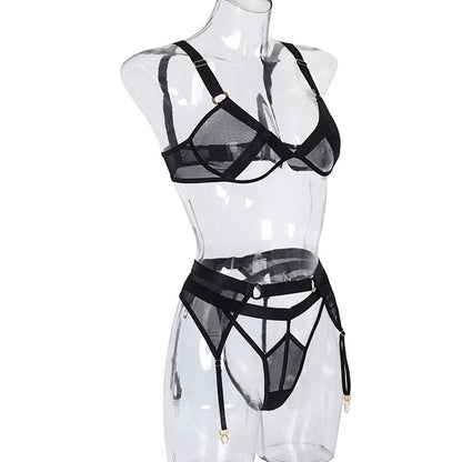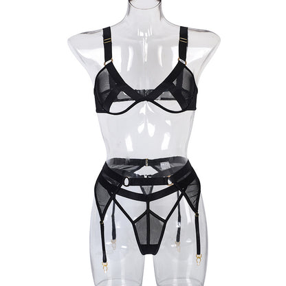 Lace Hollow Out 3 Piece Set Wireless Underwear Sensual Lingerie Set