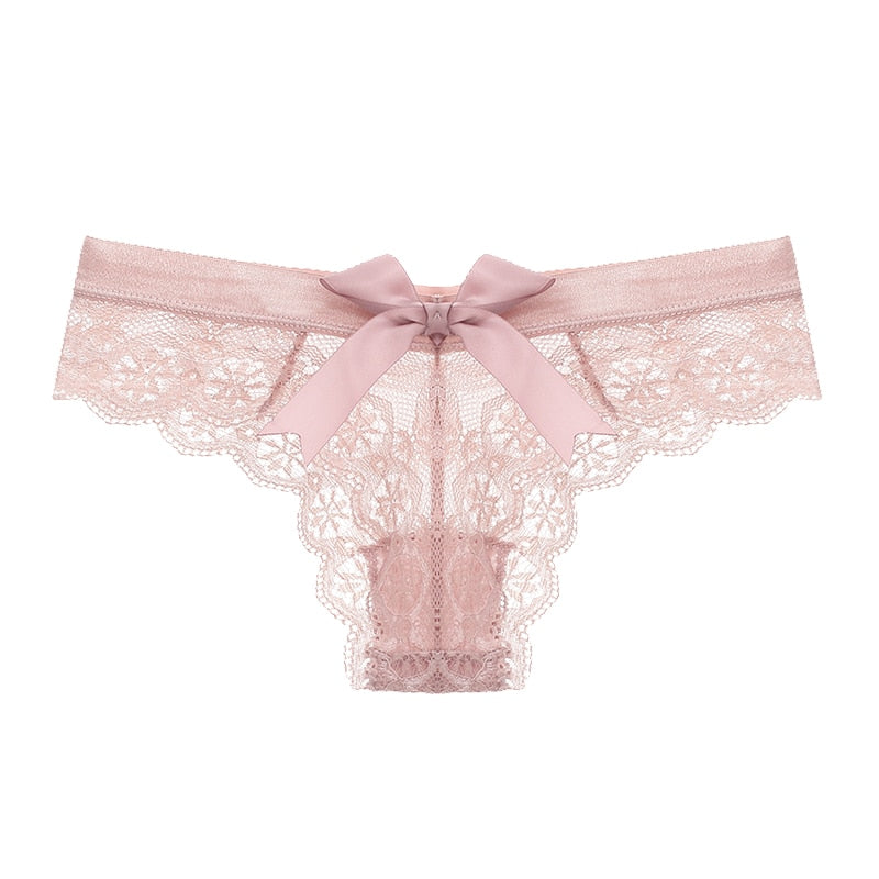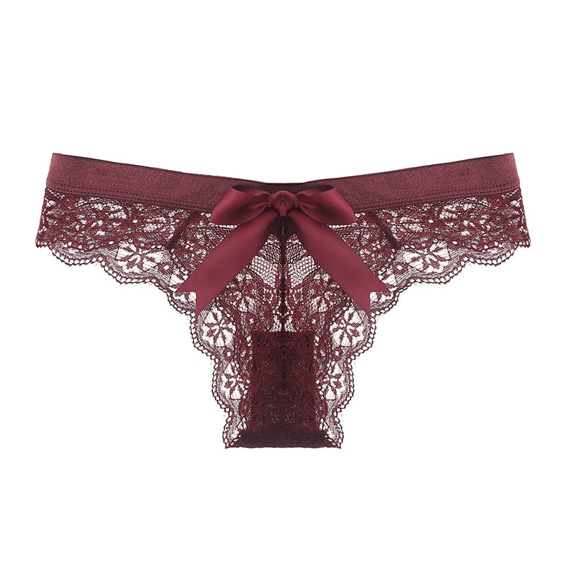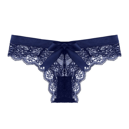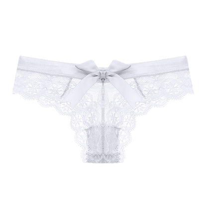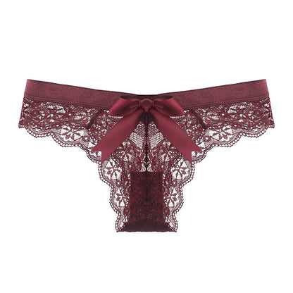 Lace Lingerie G String Underwear Bow T-Back Thong Transparent Low Waist Panties