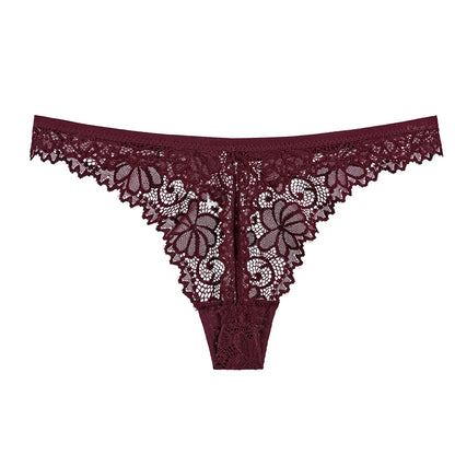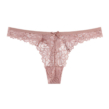 Lace Lingerie Low-waist Panties Embroidery Thong Transparent Hollow out Underwear G String