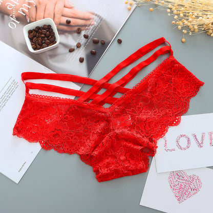 Lace Low-Rise Solid Briefs Underwear Cross Strap Temptation Lingerie Ladies G String Thong Panties