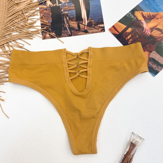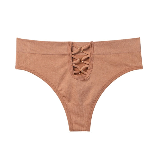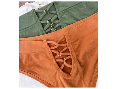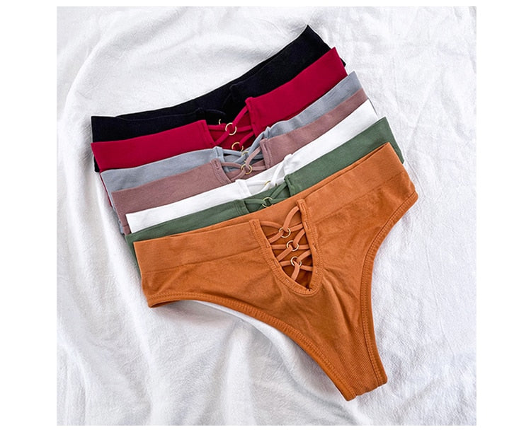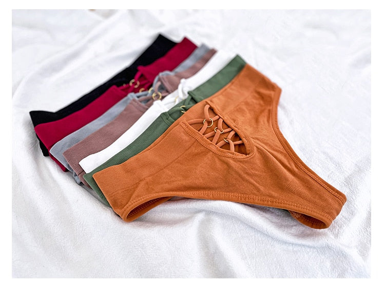 Cotton Mix Panties Mid-waist Underwear Thong G String Breathable Lingerie Temptation Hollow Out Intimates