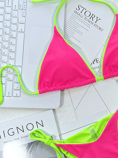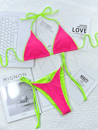 Leopard Micro Bikini Women's Swimsuit Swimwear Thong Bikinis Set Brazilian Halter Beach Wear Lace Up Bathing Suit