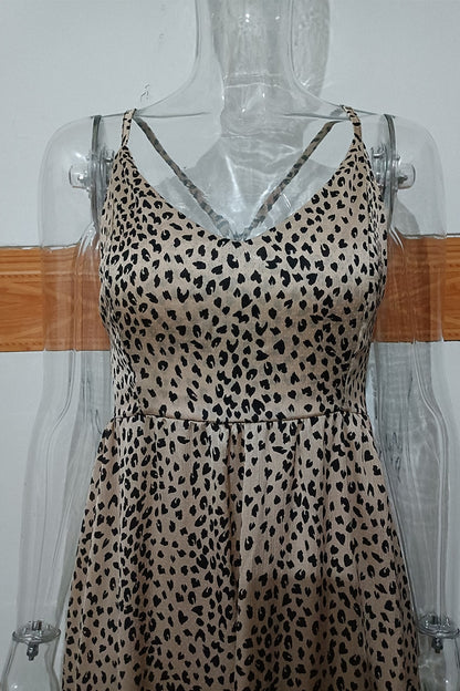 Pay in 4 instalments with AfterPay, Buy Now Pay LaterLeopard Print Spaghetti Strap Backless Dresses Vintage Ruffled Lace Up Party Maxi Dress