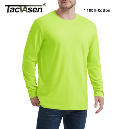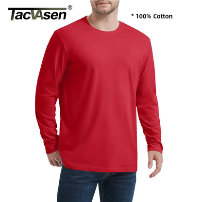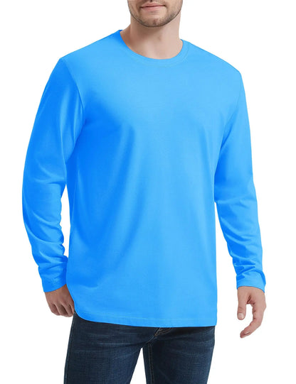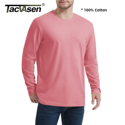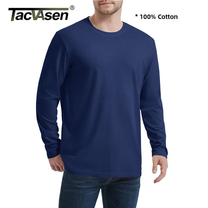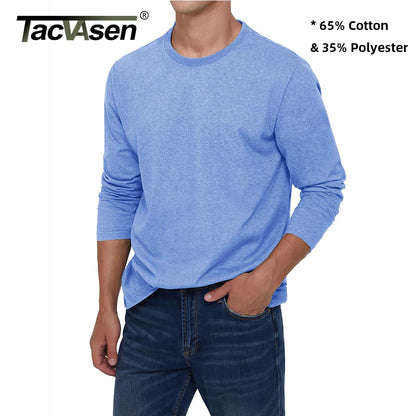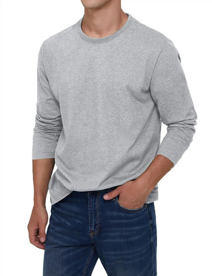 Long Sleeve Cotton T-shirt Mens Breathable Moisture Absorbing Casual T-shirt Spring Pullover Crew Neck Basic Tee Top