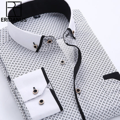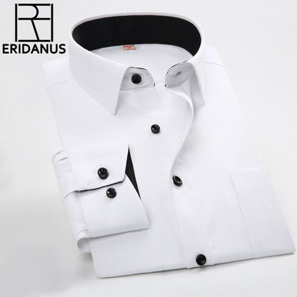 Long Sleeve Slim Men Dress Shirt Autumn New Fashion Designer Solid Male Clothing Fit Business Shirts