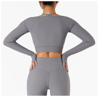 Long Sleeve Yoga With Chest Pads Quick Dry Fitness Clothes Gym Tight Sports Yoga Crop Top