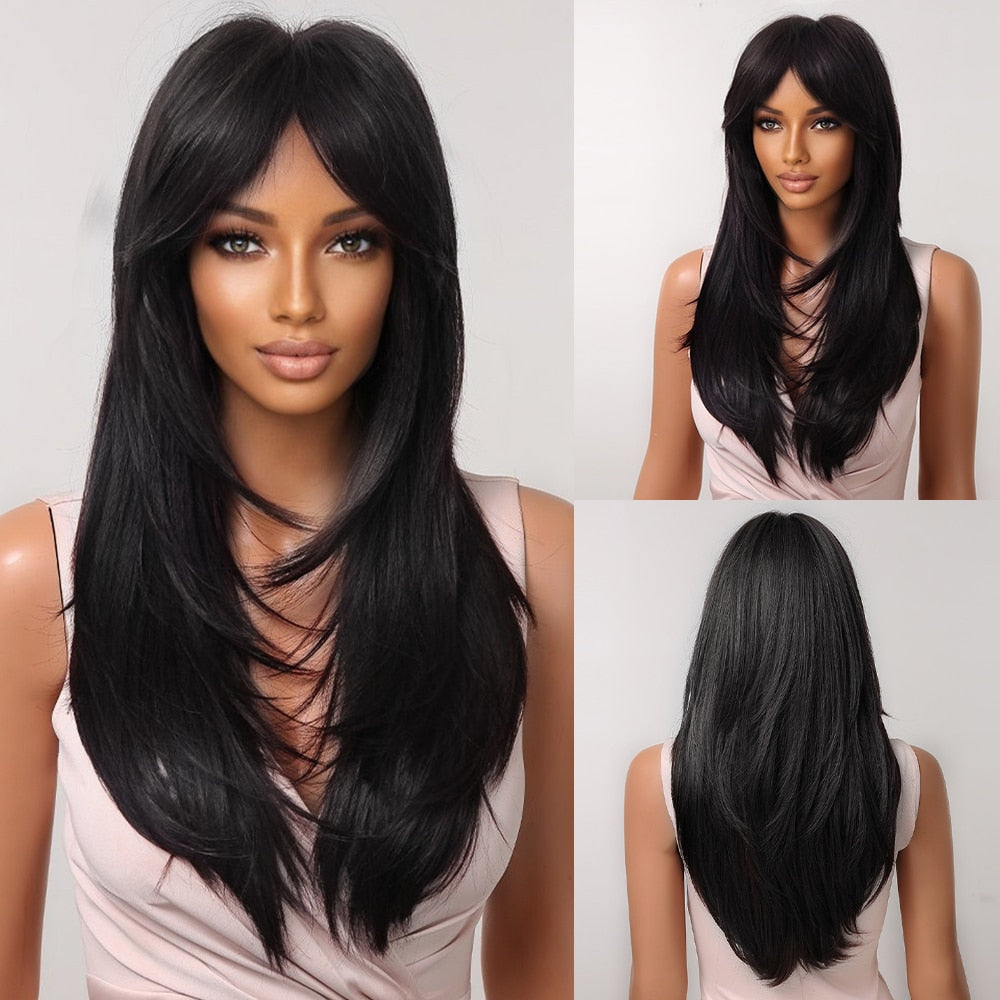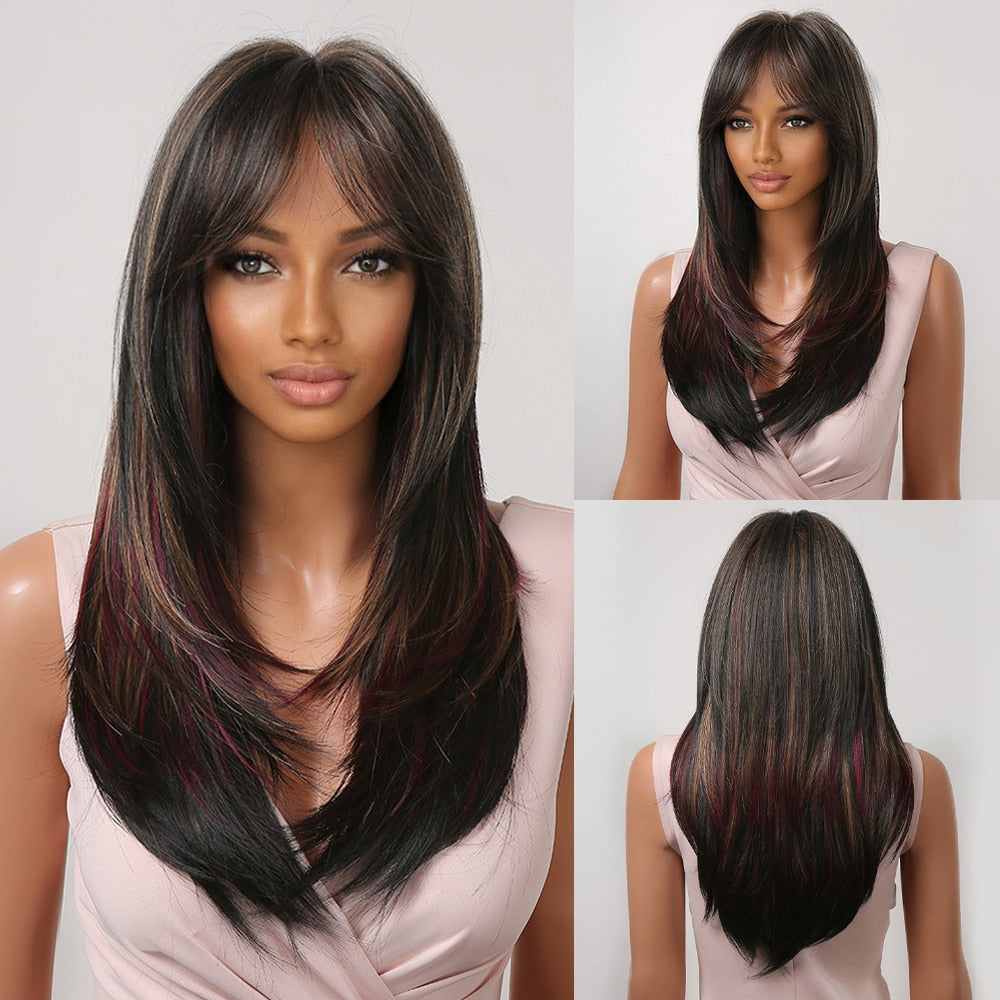 Pay in 4 instalments with AfterPay, Buy Now Pay LaterLong Straight Blonde Layered Synthetic Wigs Brown Balayage Ombre Wigs With Bang Cosplay Costume Heat Resistant Wigs