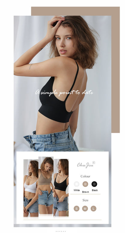 Low Back Top Backless Bra Women's Seamless Bralette Comfort Wireless Unlined Lingerie Black White Brassiere Underwear