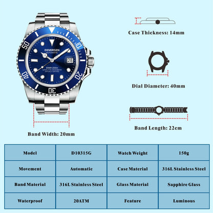 Luxury Automatic Watch Sport Stainless Steel Sapphire Glass Luminous Mechanical Men Ladies Wristwatch