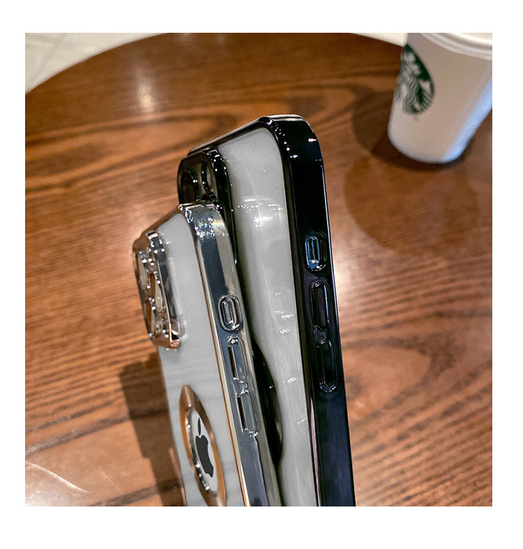 Luxury Square Plating Clear Case For iPhone 13 12 11 Pro Max X XR XS Plus LOGO Hole Hollow Soft Silicone Glass Camera Cover