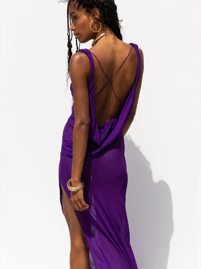 Maxi Dress Fashion Backless Cover Ups Chiffon Sundress Beachwear Long Beach Dress Summer Outfits Bodycon Dress