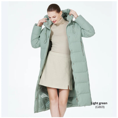 Maxi Long quilted coat elegant thick cotton jacket winter women's Outerwear with hood