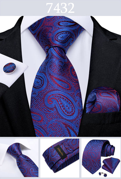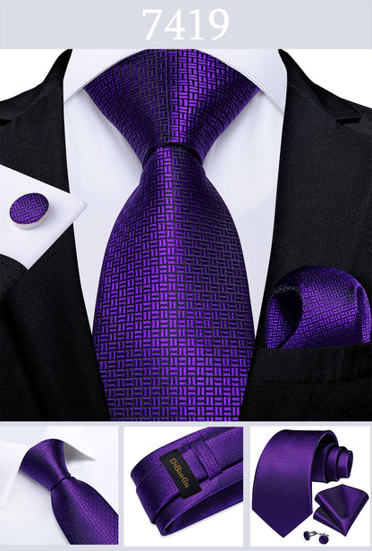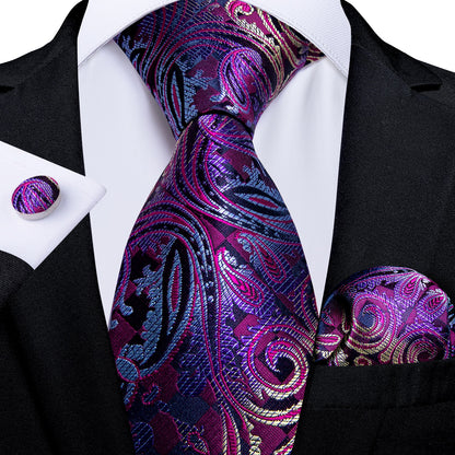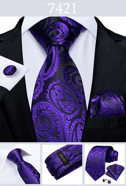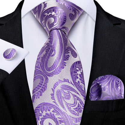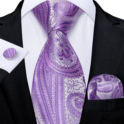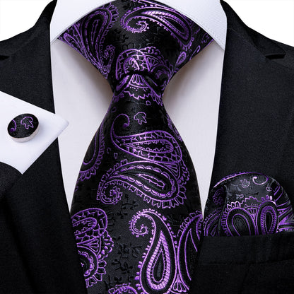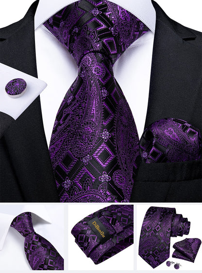 Pay in 4 instalments with AfterPay, Buy Now Pay LaterMen Purple Floral Paisley Necktie Business Formal 100% Silk Tie Pocket Square Set For Wedding Party