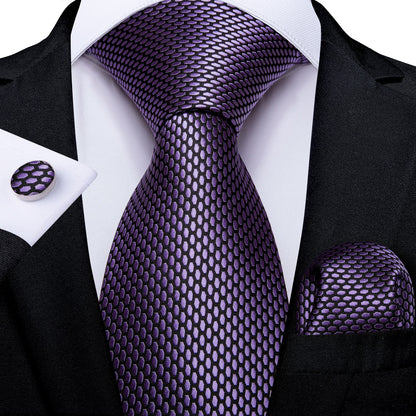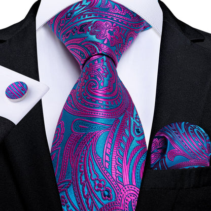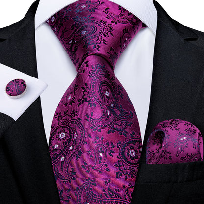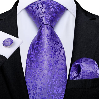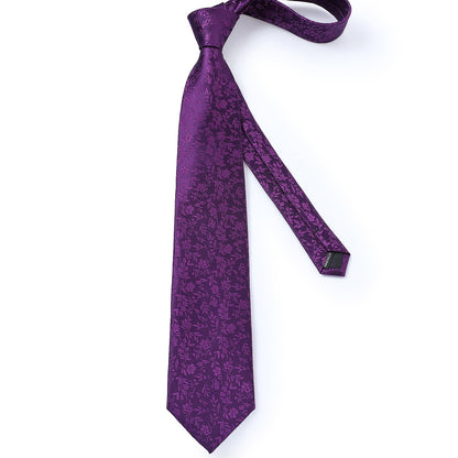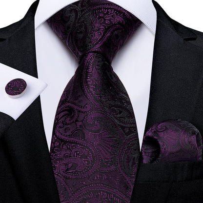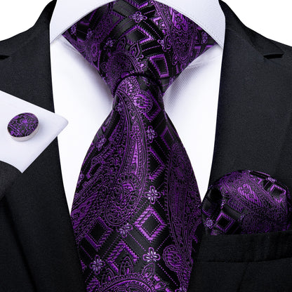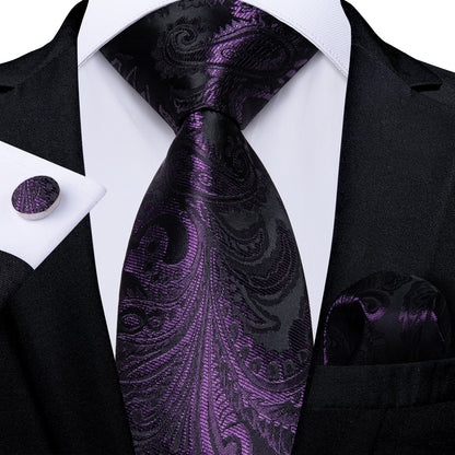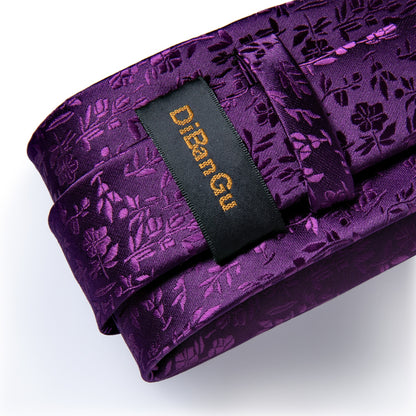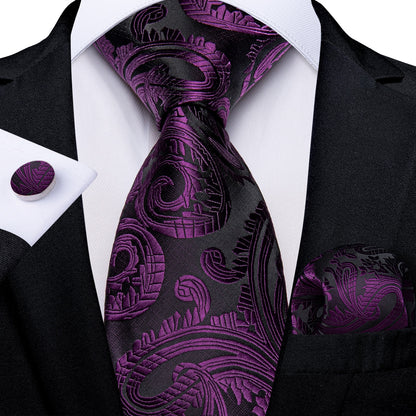 Men Purple Floral Paisley Necktie Business Formal 100% Silk Tie Pocket Square Set For Wedding Party
