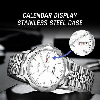 Men's Automatic Mechanical MIYOTA Movt Stainless Steel Business Calendar Week Display Water Resistant Watch
