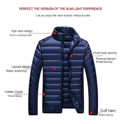 Men’s Lightweight Duck Down Jacket – Waterproof Autumn/Winter Outdoor Coat