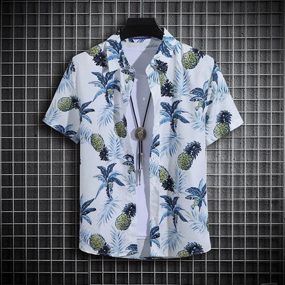 Men's Summer Short Sleeve Printed Shirt Thin Beach Shirt Men's Clothing Turtle Neck Polo Shirt Casual Top