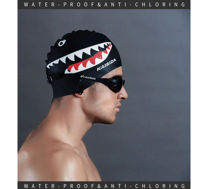 Men's Swimming Cap Adult Elastic Shark Swimming Caps Waterproof Protect Ears Long Hair Soft Women Bathing Cap