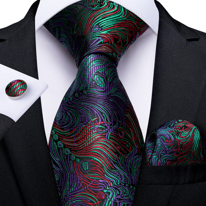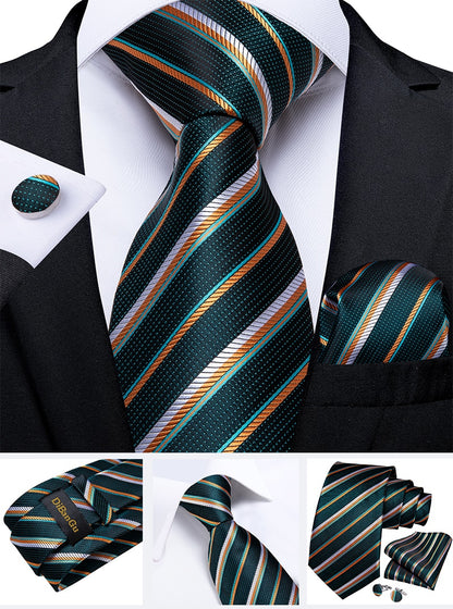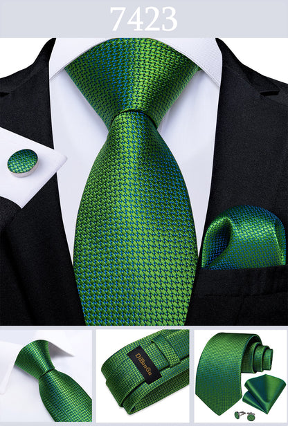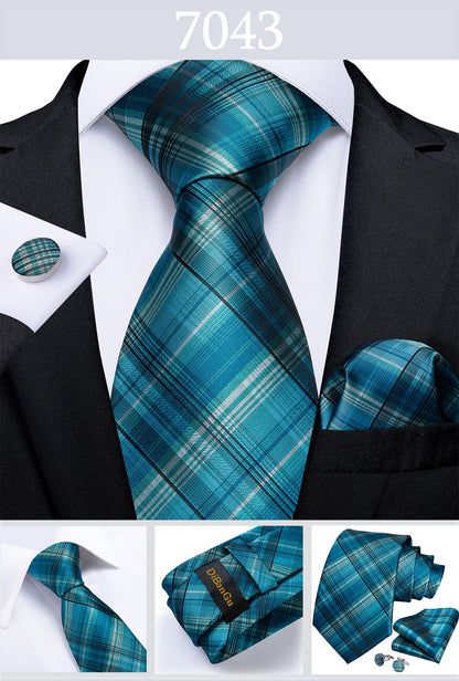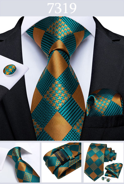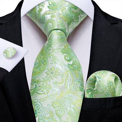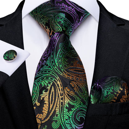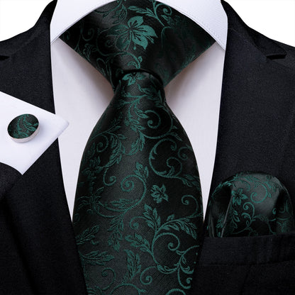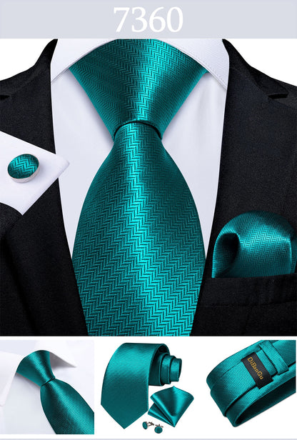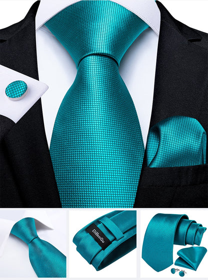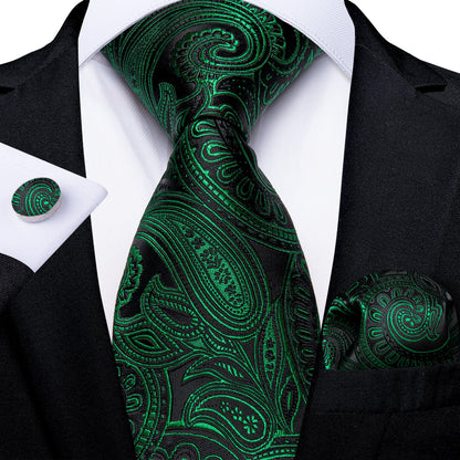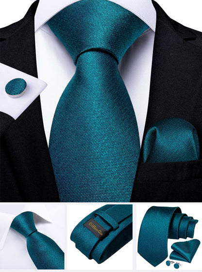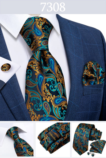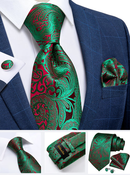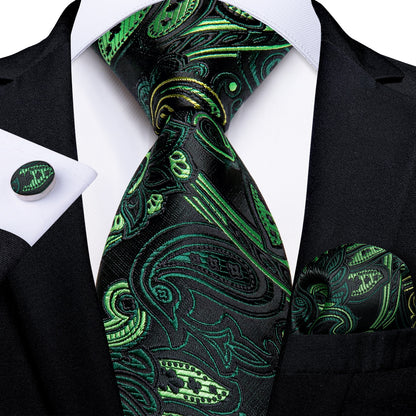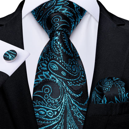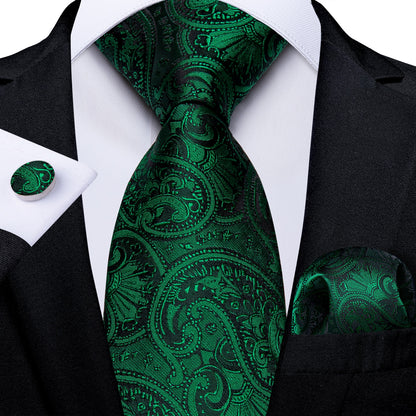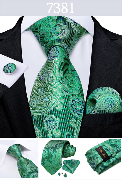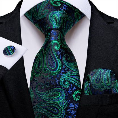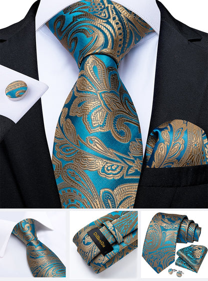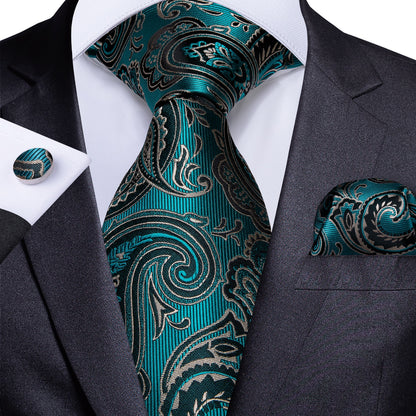 Men's Tie Teal Green Paisley Novelty Design Silk Wedding Tie for Men Handky cufflink Tie Set Party Business Fashion Set