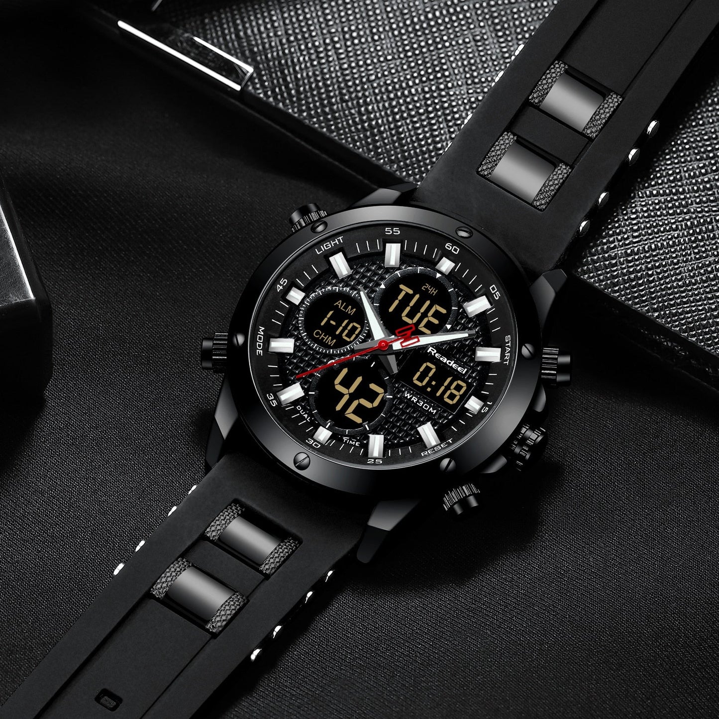 Mens Top Brand Luxury Chronograph Gold Men Watch Quartz Digital Led Sport Watch Waterproof Wristwatch
