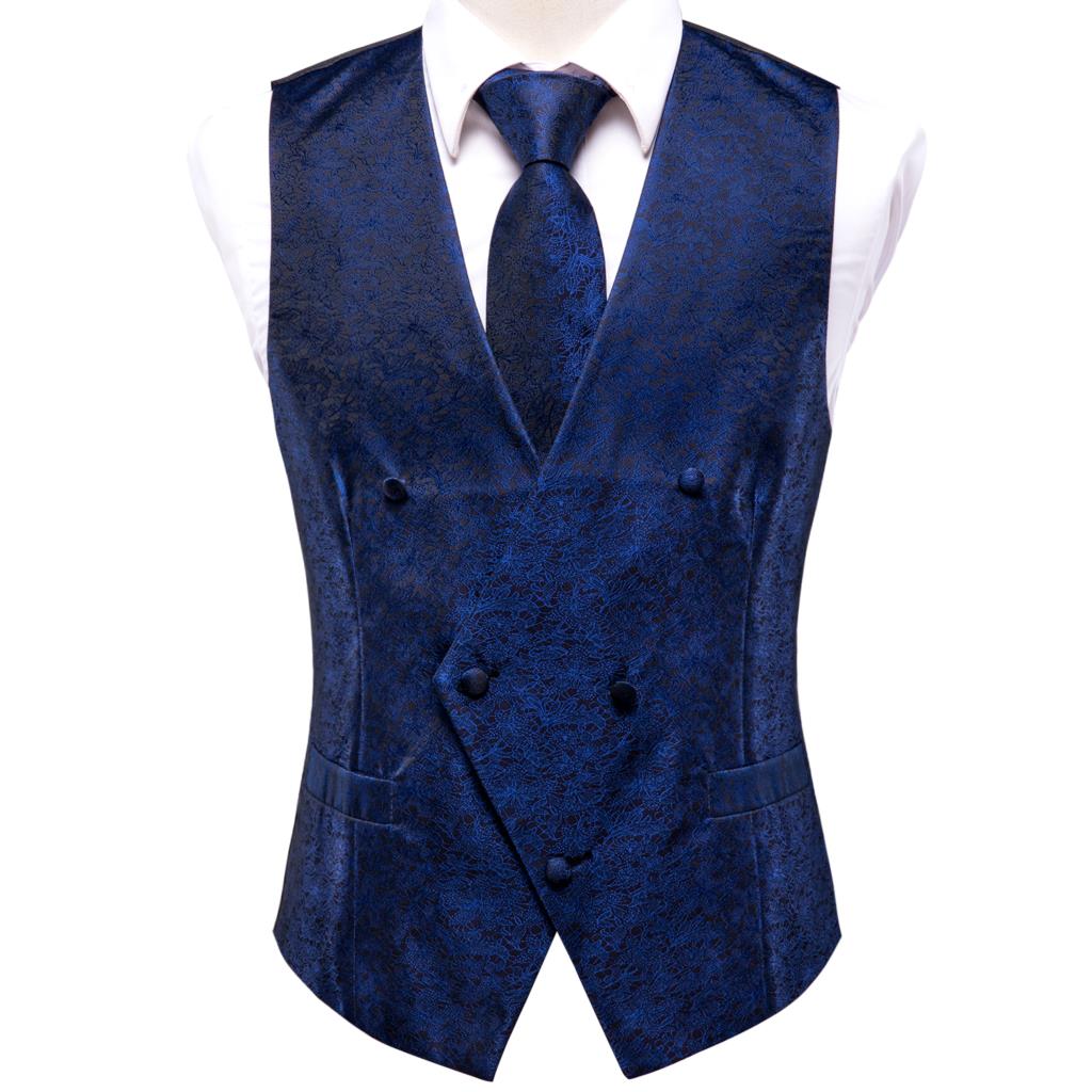 Pay in 4 instalments with AfterPay, Buy Now Pay LaterMen's Vests and Tie Business Formal Dresses Slim Vest 4piece Hanky cufflinks for Suit Blue Paisley Waistcoat