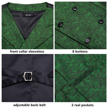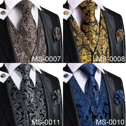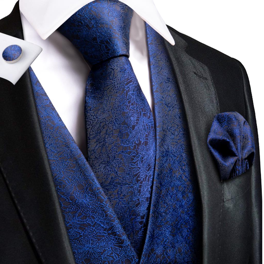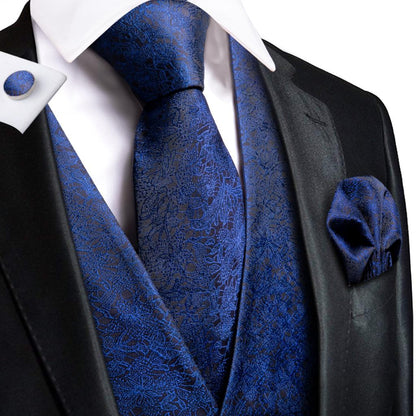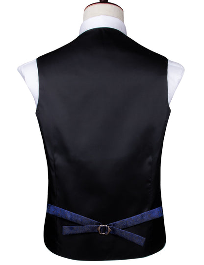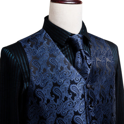 Men's Vests and Tie Business Formal Dresses Slim Vest 4piece Hanky cufflinks for Suit Blue Paisley Waistcoat