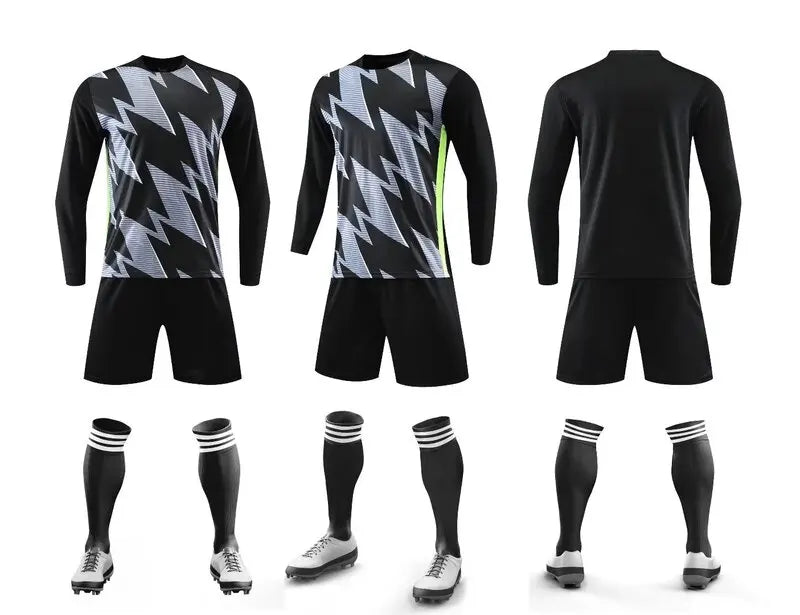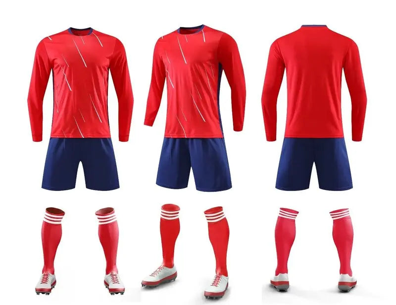 Mens Womens Kids Long Sleeve Football Jersey Set Team Soccer Training Match Sports Uniform Suit