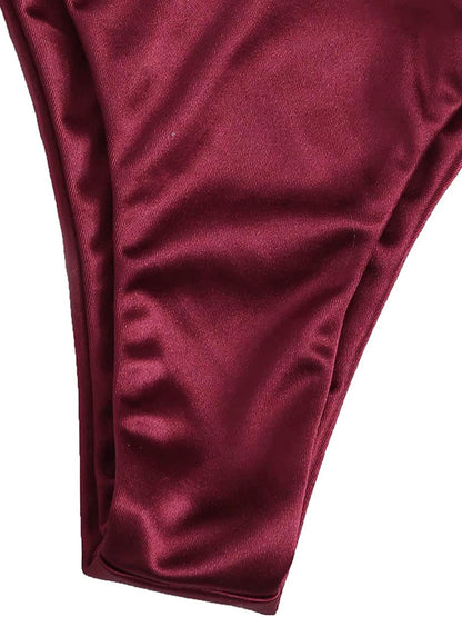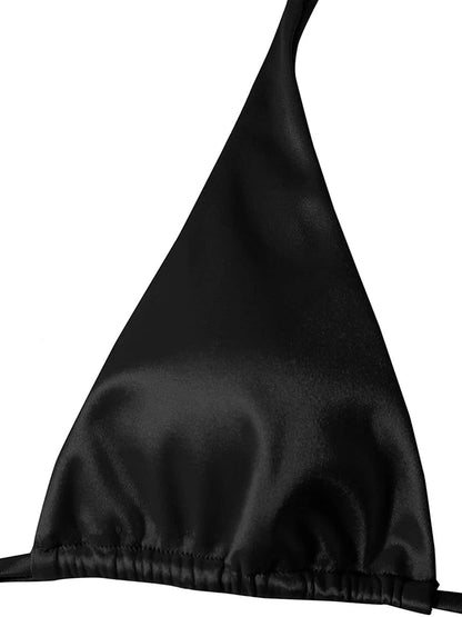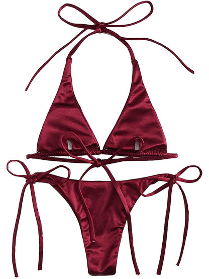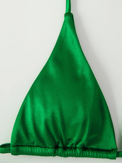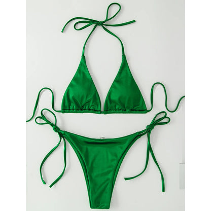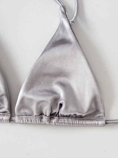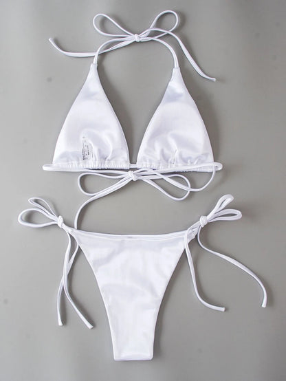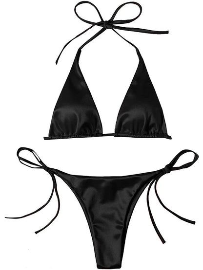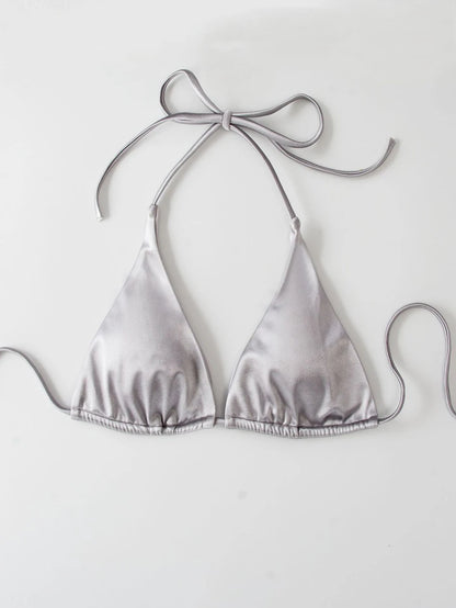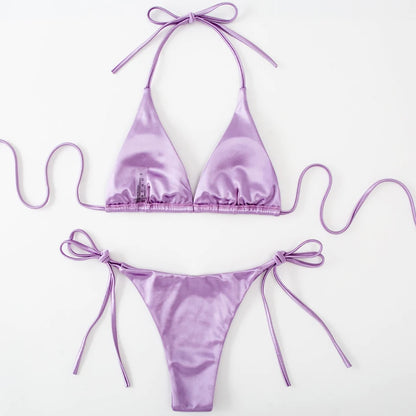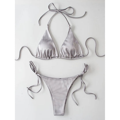 Metallic Halter Triangle Swimsuit Women Swimwear Bathing Suits Brazilian Thong Micro Bikinis Set Beach Wear