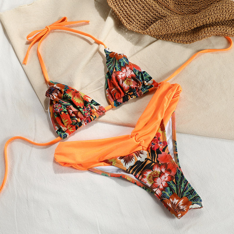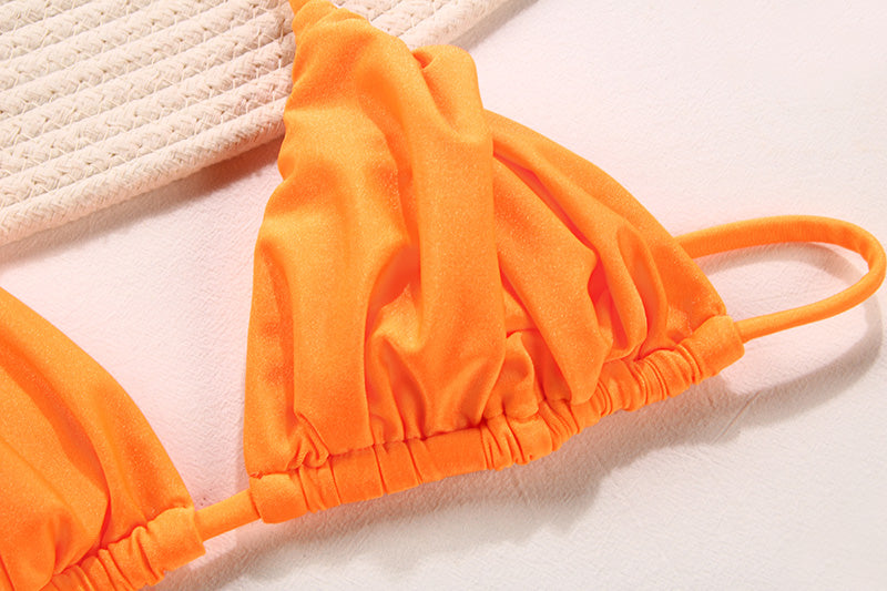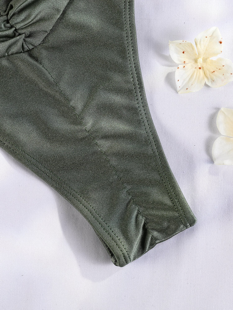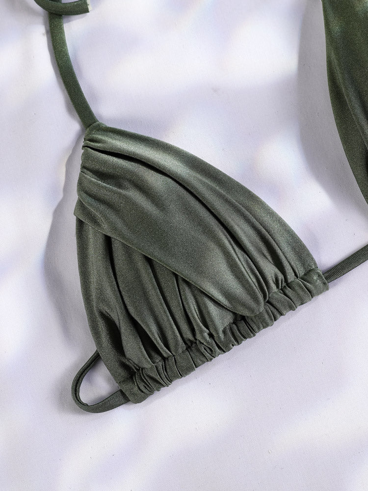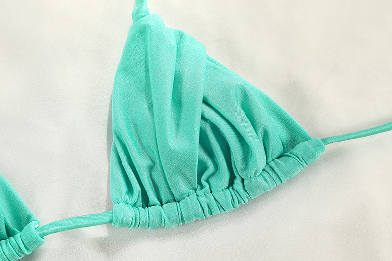 2 Piece Glitter Fabric Bikini Set Folds Swimsuit Halter Bathing Suit Swimwear Beachwear