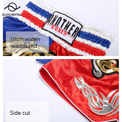 Muay Thai Shorts Men's Women's Boxing Shorts Child Embroidery Satin Kickboxing Pants Combat Grappling Cage Fighting MMA Shorts