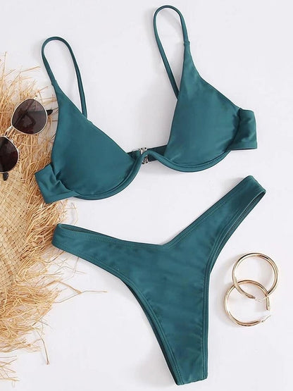 Pay in 4 instalments with AfterPay, Buy Now Pay LaterNeon V-bar Underwired Bikini Ribbed Swimsuit Women Thong Swimwear Two-pieces Bikini set Push up Bathing Suit