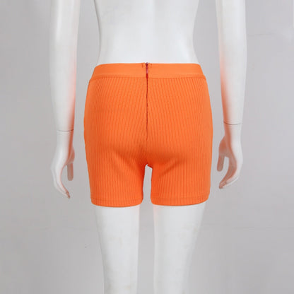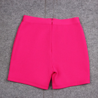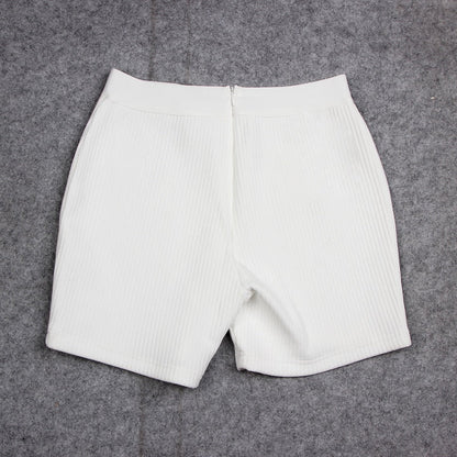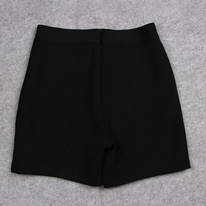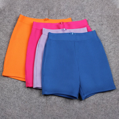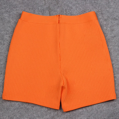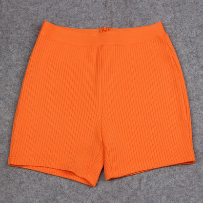 New Fashion Bandage Shorts Casual Black Orange Bone Color Shorts