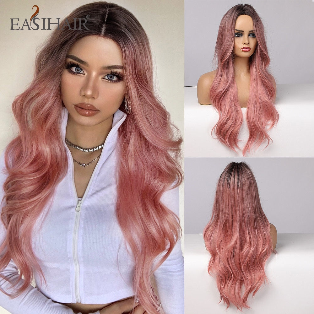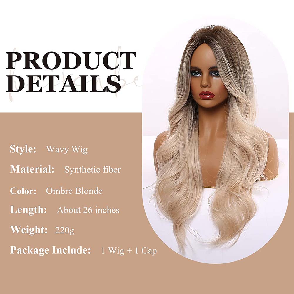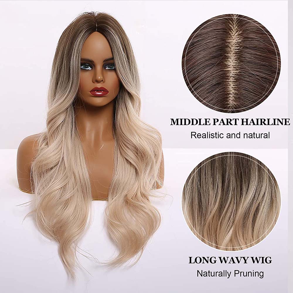 Pay in 4 instalments with AfterPay, Buy Now Pay LaterOmbre Brown Light Blonde Platinum Long Wavy Middle Part Hair Wig Cosplay Natural Heat Resistant Synthetic Wig for Women