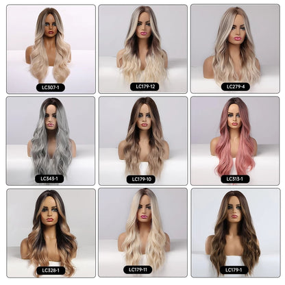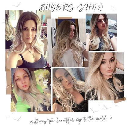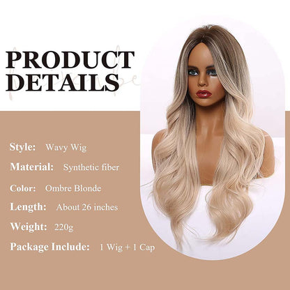 Ombre Brown Light Blonde Platinum Long Wavy Middle Part Hair Wig Cosplay Natural Heat Resistant Synthetic Wig for Women